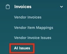 - If the system is not confident enough to know what invoice a page should map to, it will route to an AI Issues submenu within the Invoices section: