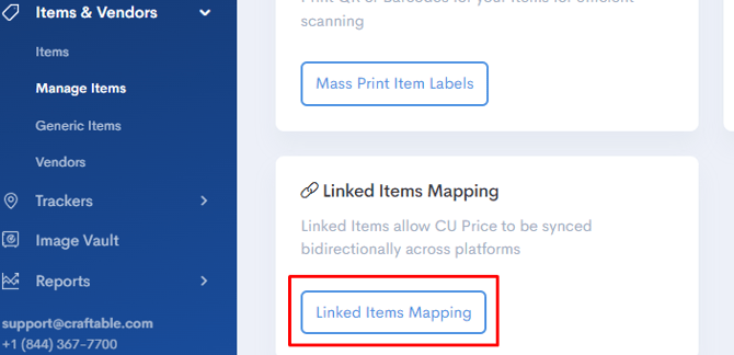 To set up Linked Items navigate to Items & Vendors > Manage Items > Linked Items Mapping.