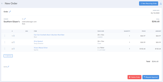 Once Multi-User Order Approval is set, then orders created by anyone who is not the Master Approver will be sent up to the Director Account for approval. Below is what the store account will see when sending an order that requires approval.