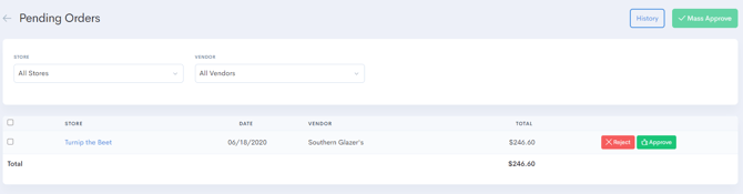 If approved, the order will still be listed in Pending Orders until the Master Approver has approved the order.